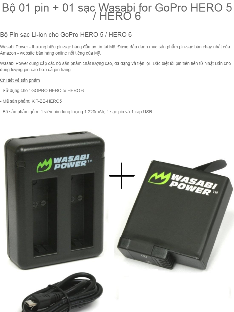 Bán Bộ Pin Kèm Sạc đôi Wasabi Cho Gopro 6 Và Gopro 5 Tốt Nhất So